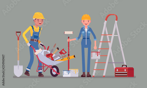 Construction Workers With Professional Equipment Male Female