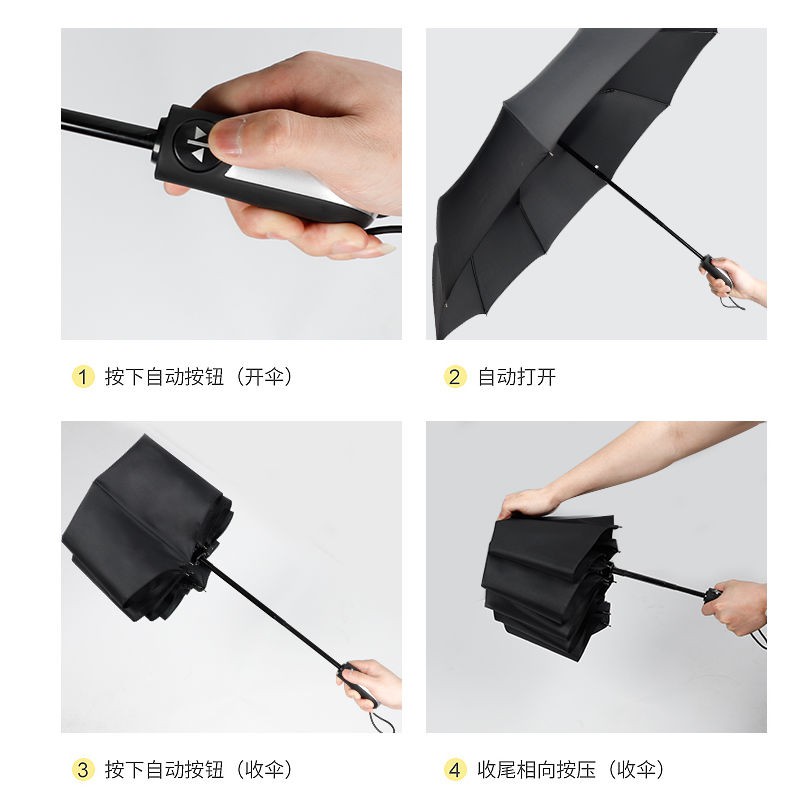1pc Full Automatic Umbrella Folding Manual Triple Folding Black