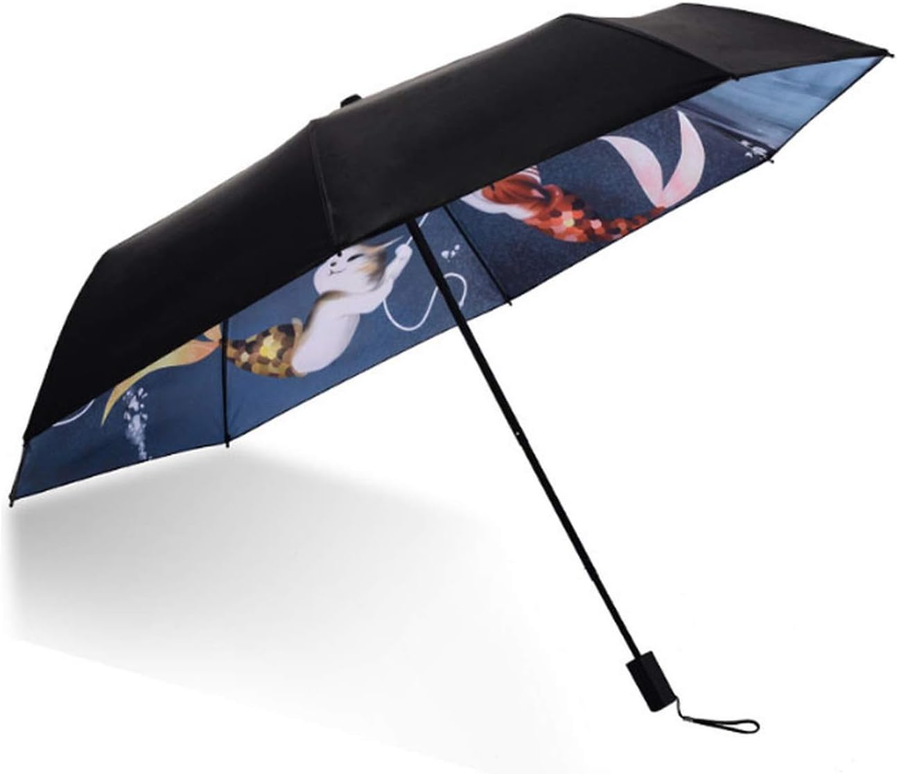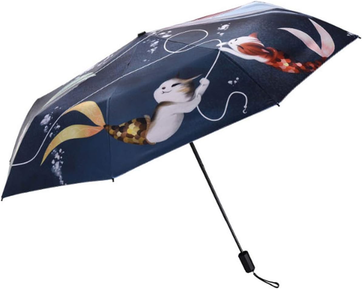 Amazon Com Cat Fish Printed 3 Folding Women Umbrella Sunny Rainy